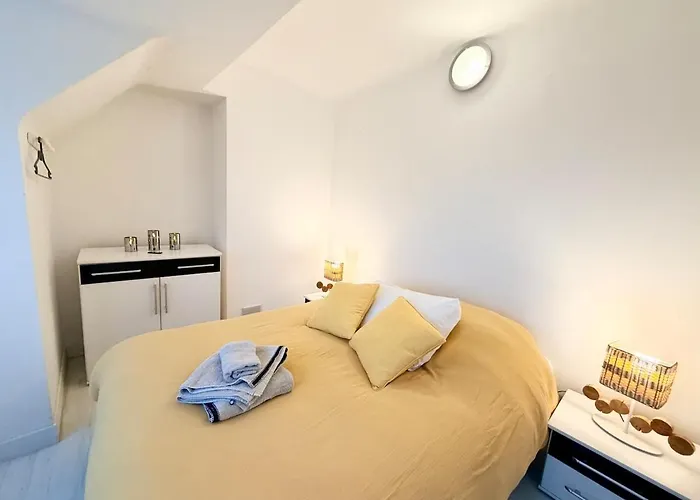 Aux Trois Ferries - Vue Port Apartment Calais lies in the Calais Centre Ville district of Calais and offers swift access to the Richelieu Park, which is merely 9 minutes' walk away. Guests can make use of Wi-Fi for both business and leisure purposes.
